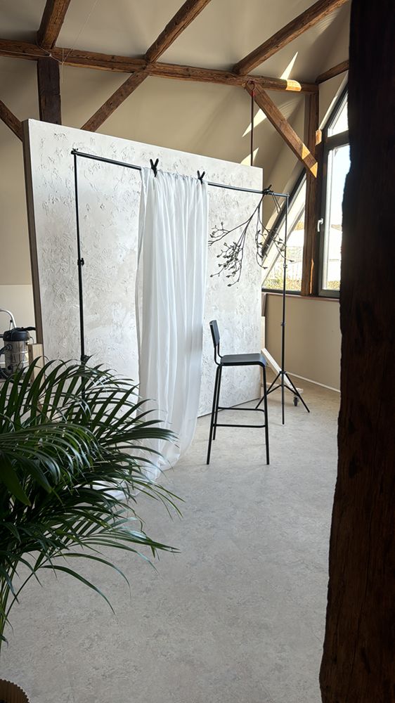 Das Fotostudio befinden sich auf einem Dachboden und hat den Hauch vom rustikalen aber sehr modernen Look.